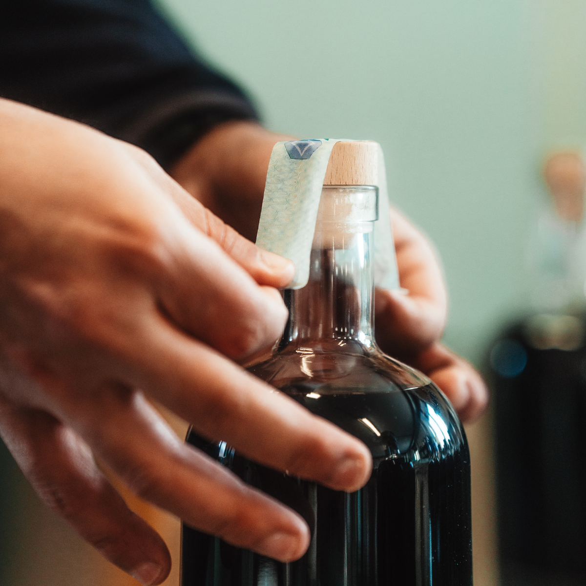 Ogni pezzo viene imbottigliato, tappato e sigillato completamente a mano, garantendo un prodotto unico e di alta qualità.